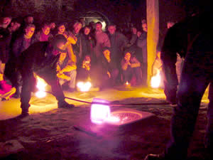 | (1 décembre 2001) L'accueil au Logis du Retail, magnifique ferme fortifiée, est mis en scène et en musique: petit bar, vin chaud, crepes et fanfare de Parthenay pour mettre en bouche le tout public de ce" pré- dégrippage au canton"...