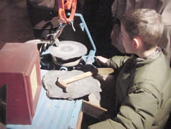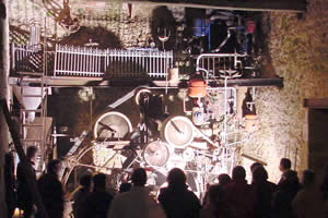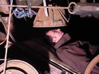 ![]() Voici une de ses premières machines remise en état : la machine à botter le derrière des garnements. Démonstration sur scène effectuée sur un enfant" volontaire" ! |