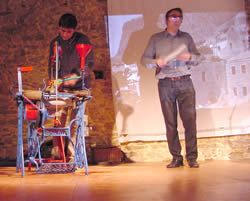 ![]() "OPUS" est à l'oeuvre... Sur fond de diapositives (avec erreur sur images...) défile la vie de Robert Jarry, forgeron de Pougne et grand inventeur de machines extraordinaires... |
