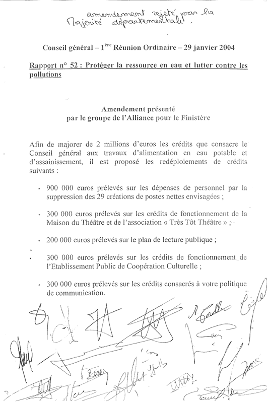 du groupe Alliance pour le Finistère proposant purement et simplement