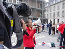 A priori, les manifestants présents voient mal le Festival de Cornouaille ne pas le signer. Un nouveau rendez vous a été fixé à 20H avec la Direction, ça se présente plutôt bien… Vendredi 16H, Vendredi 16H50, au pied de La Cathédrale.