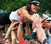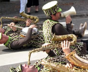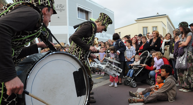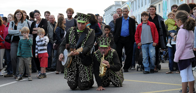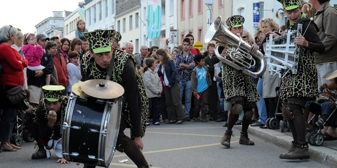 Imaginez sept pseudo girafes vertes qui déambulent incognito dans la foule perplexe. Et puis soudain, les voilà qui s'écroulent sans prévenir, qui montent des machines sonores improvisées, qui dansent en silence ou lancent des thèmes d'enfer mâtinés de solos volcaniques. Des farfelus, des incongrus, des rigolos, des furieux, des barjos, des frappa-dingues, des l'air de rien, des aventuriers-paumés, des incontrôlables, des dérapeurs professionnels, des... c'est selon !