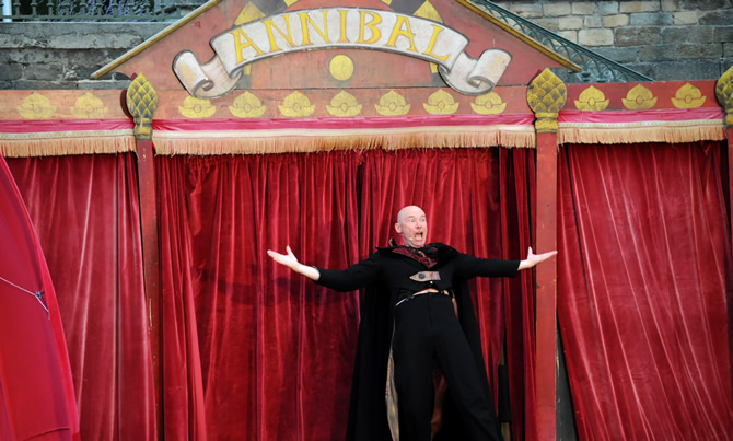 Au bord de son camion aménagé en scène d'attraction, l'infatigable Annibal, des tournées internationales Annibal et fils, dernier représentant d'une longue lignée de forains, bateleur invétéré et bavard impénitent ; exhibe de ville en ville une bête curieuse, une bête de scène : Roger cabot.