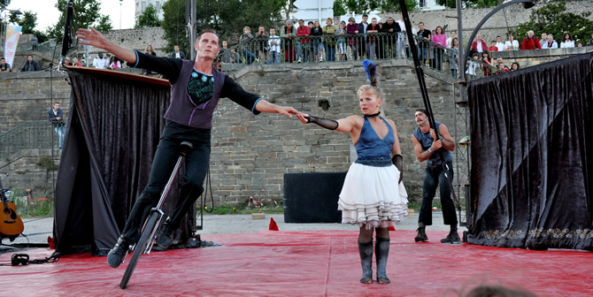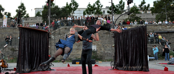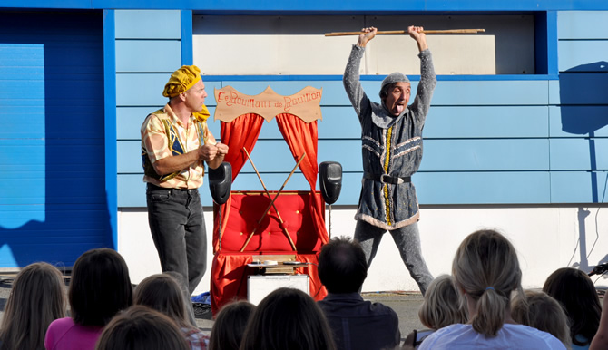 Nous sommes aux alentours du château de Bouillon, un bateleur nous fait revivre la fameuse épopée des croisades. Il dirige avec brio deux comédiens choisis au hasard dans le public : une bergère mignonnette et un bouillant chevalier. Ils sont tous les deux formidables, surtout René...