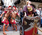 Sur un char romain tiré par deux légionnaires jugulaire-jugulaire, elle part en quête de son fils chéri Néron pour lui annoncer qu'il est empereur, l'admirer dans ses tours de chants, l'assister dans son stage chez les pompiers, vilipender les journalistes qui lui font une salle réputation... mais comme elle est très myope, elle a tendance à le confondre avec les passants alentour.