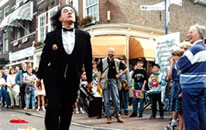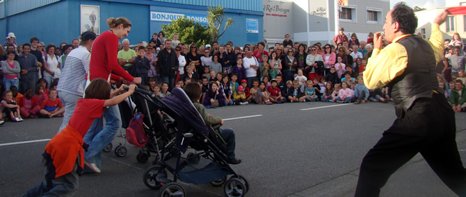Jackà arpente les rues. Il y croise des passants et improvise sous leurs yeux ébahis. Chaque rencontre est une occasion d’embarquer le monde dans son univers loufoque. Il promène les pigeons, organise des courses de poussettes, devient tour à tour coiffeur, torero, shérif, bébé, vieille gitane et parfois même victime de promeneurs espiègles...