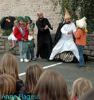 Revêtus d'accessoires dérisoires et de vêtements éculés, nos apprentis comédiens s'en sortent plutôt bien ! « Au secours au secours » crie la princesse. « Taïaut Taïaut » répond son chevalier. « Wouaf wouaf » aboie le Chien magique en écho. « Ouais ! » scande le peuple à l'unisson. Les scènes à vive allure s'enchaînent haletantes, emmenées par le Mage metteur en scène. Il donne du rythme, il s'agite, il dirige avec ferveur ses acteurs d'une heure ! Tout au long de cette histoire abracadabrantesque, le public embarqué, fait vibrer les quais de ses rires et applaudissements ! Et l'Amour toujours triomphe !