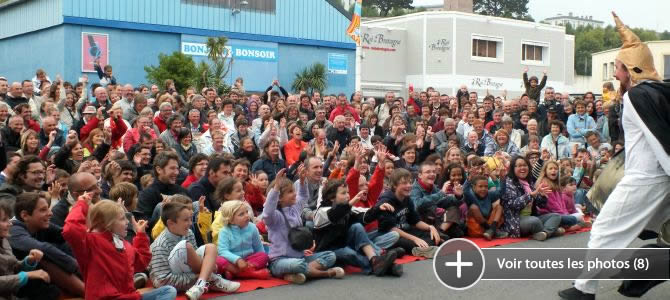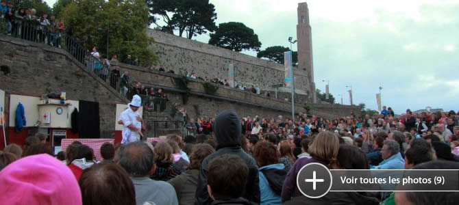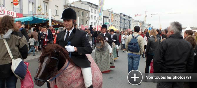 Le public surpris par l'équestre déambulation s'écarte médusé, amusé. Retour devant la Criée où, en quelques minutes, il s'est en grand nombre laissé attirer et rassembler. La leçon de dressage peut commencer. Les exercices - in English présentés – sont bien sûr ponctués de quelques ratés !