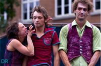 Ils arrivent de derrière leurs rideaux bleus de velours, les cheveux en bataille et la gueule enfarinée, les deux gars (Pierre-Jean Bréaud et Fitou Jebejian) et la fille (Cécile Berthomier) du Cubitus du Manchot, joyeuse compagnie venue de Nîmes. C'est avec fraîcheur, boufonerie et enthousiasme que ce trio de clowns-acrobates-musiciens, se lance dans une chorégraphie loufoque, burlesque et poétique défiant les lois de l'apesanteur. Ces trois-là ne peuvent pas s'empêcher de (se) chahuter. Ça rigole, ça joue, ça cabriole ! Tiens, comment ça fait quand on s'emmêle ? À deux ? À trois ? Un bras par-ci, un pied par là... Les corps s'emberlificotent et se démêlent, s'embrassent et jouent à se faire peur. Ils font l'avion, le tourbillon, ils crapahutent, se plient en quatre, se jettent en l'air, s'attrapent au vol et rebondissent... Mais à trois ça ne loupe pas... y'en a toujours un pour trinquer, toujours un qui se fait avoir, toujours un dont il fait bon se moquer. A trois, ça penche toujours d'un côté... un chiffre rêvé pour un jeu de chaises musicales acrobatique et burlesque, potache et décapant !