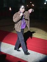 Mais patatras, Yannick Jaulin surgit de l'ombre... "Ben dites donc! , un p'tit peu de fumée, un p'tit coup de lumière, un peu de réverbe dans la voix et vous voilà partis... il vous faut pas grand chose à vous, public d'arts de la rue! (Yves Deschamps rigole...)