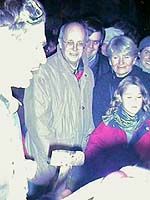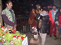 Le long d'un "chemin de feu" alimenté en bois de palettes par les services techniques de Sotteville, les hallucinations sont contagieuses... Après un verre (ou deux) de vin chaud à la mode sottevillaise, d'aucuns croient reconnaître des visages célèbres du Théâtre de rue. Ces 2 policiers ressembleraient comme 2 gouttes d'eau à Bompard/Maddedu, cet homme des bois à Pierrot Berthelot, ces chercheurs pervers aux guides de Délices Dada... La température intérieure remonte à 12°5. |