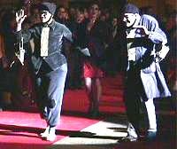 Mr Max et ses Saintes Catherine, cireurs de pompes devant l'éternel accueillent les premiers invités qui seront bientôt 2000 à fouler le tapis rouge conventionnel... |