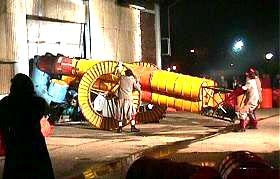 Le Poing avance, prend son élan pour le 1er coup, puis recule pour le 2ème, et enfin prend son dernier élan pour le 3ème. La porte recule mais ne cède pas... Résistance toute symbolique car 4 employés des services techniques se précipitent et achèvent le boulot : il est 21h15, le public envahit le lieu, l'Atelier 231 est ouvert!Les images qui suivront ne feront que confirmer que... |