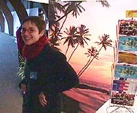![]() Marie-Cécile, l'hôtesse d'accueil de Longitudes JC. Cartes postales, cassettes et divers souvenirs à vendre. |