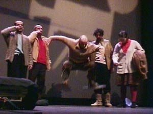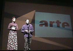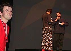 ![]() Un technicien, vraiment très... embêté, demande à nos 2 présentateurs de meubler! Heu... heu... Anabelle propose de faire monter les Poddèmes sur scène. |