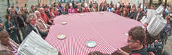 Samedi 15 octobre, premier jour des portes ouvertes. Il est dix heures et déjà, près de la cabane rouge, les visiteurs sont présents et les acteurs des futurs équipements culturels du plateau des Capucins, sont prêts à faire visiter leur future maison. Des anciens ouvriers venus revoir leur lieu de travail et ces machines qu'ils ont si bien connues, aux familles impatientes de faire découvrir à leurs enfants ce nouveau quartier, 12000 personnes, toutes générations confondues, affluent pendant ces deux jours et découvrent avec émotion cet endroit exceptionnel. Sur le chemin de leur visite, ils assistent et participent avec plaisir aux clins d'œil artistiques concoctés par les 150 habitants volontaires pendant toute cette semaine entre le Fourneau et les Capucins. Sur place, tous les acteurs du projet sont présents et disposés à répondre aux questions.