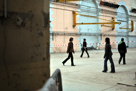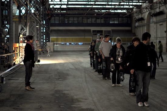 Vendredi 14 Octobre : répétition générale des 150 habitants avec les artistes (dès que possible à partir de 17h03).Tel des privilégiés, les 150 participants de la Marche des Capucins franchissent les portes des anciens ateliers qui, le temps de deux soirées, n'appartiendront plus qu'à eux.