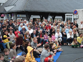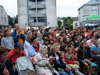 Vendredi 25, plus de 400 personnes applaudissent la Cie Qualité Street, PLace de la Résistance au Relecq-Kerhuon.