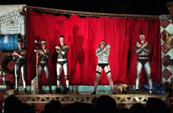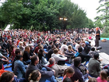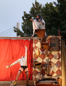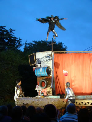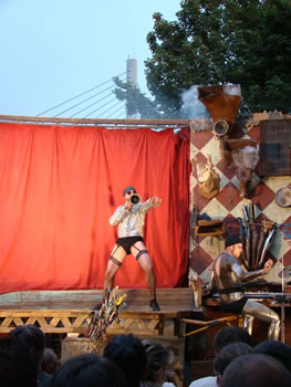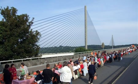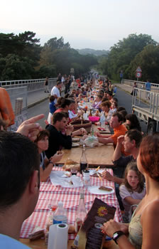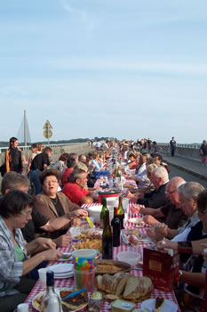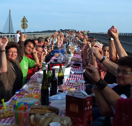| Après avoir pique-niqué sur le Pont Albert Louppe, les centaines de convives se sont rapidement transformés en un millier de spectateurs venu applaudir les Frère Grimox des 3 Points de Suspension et leur "voyage en bordure du bord du bout du monde" |