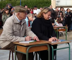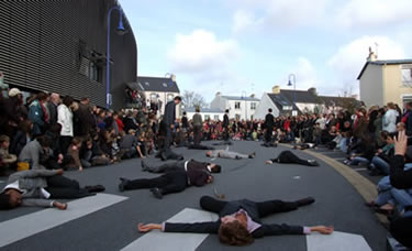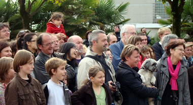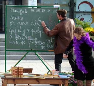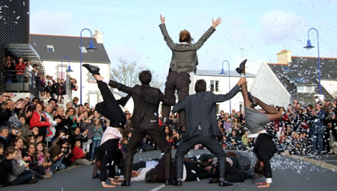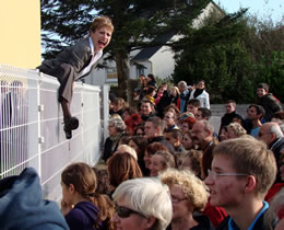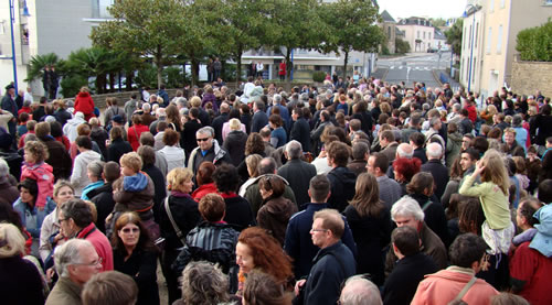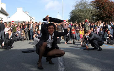 A 16h16, aux quatre coins du monde, c'est l'heure de faire résonner le Manifeste des Arts de la Rue. A cet horaire précis, 500 personnes sont réunies devant la Mairie du Relecq-Kerhuon pour la "Dictée du Manifeste", revue et corrigée par la Compagnie Une de Plus. |