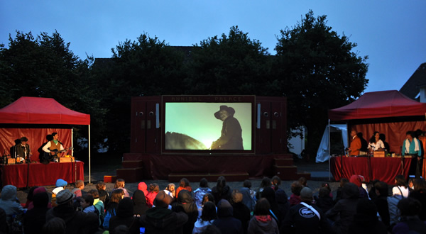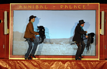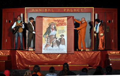 Et sifflent les balles et sautent les bâtons de dynamite... A ce détail prêt : tourné en 1919, The Wild Witness ne peut être que muet. Et c'est là tout l'intérêt de ce Film du Dimanche Soir, ce qui le classe dans le rang du spectacle vivant : c'est la famille Annibal qui nous concocte en direct la bande son. Et c'est avec un grand professionnalisme qu'elle double chaque scène du film, en animant, entre chaque bobine, débats et réflexions sur les rouages du genre. Cependant, toutes ces années passées dans le grenier de la grand-mère, certaines bobines ont été endommagées et ne peuvent être projetées. Les Annibal sont alors obligés de faire les acteurs et d'interpréter ces épisodes manquant pour ne pas léser les spectateurs...