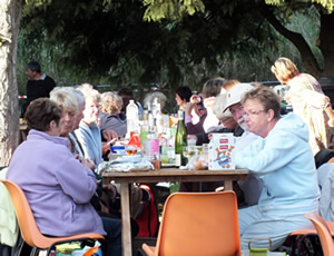 Au soleil ou sous l'ombre des arbres majestueux qui offrent au lieu son charme bucolique... Les tables sont joliment disposées, Les nappes à carreaux dépliées, Les paniers de leurs victuailles vidés. On s'assoit avec les amis, les voisins, les inconnus, les copains des copains…