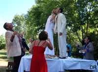 C'est une noce, comme si vous y étiez invité, avec la fête frénétique, les parents émus, les jeux imbéciles, les discours rigolos, les chansons, les engueulades inopinées, les coups de spleen, les comportements débridés...