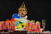 The Birthday Party est un spectacle déambulatoire qui parle de la solitude, de notre solitude. Assis à sa table, un jeune homme s'apprête à célébrer son anniversaire, seul. Pour pallier l'absence de ses invités, il cherche dans la foule celui ou celle qui voudra bien souffler sur cette bougie supplémentaire.