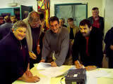 Commune de l’ïle Molène et Centre national des arts de la rue le Fourneau ne baissent pas les bras, sauvent et rapatrient une partie du matériel dans les locaux provisoires de l'Ancien Collège baptisés "Maison des Associations". C'est le 6 avril 2009 à 12H12 pétantes qu'élus, administrateurs et co-directeurs du Fourneau signent une nouvelle convention triennale qui officialise la seconde vie du "MEUMEUH" au pied du Sémaphore... |