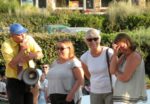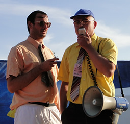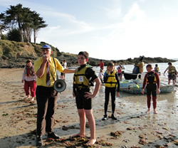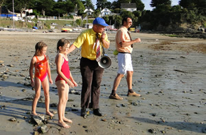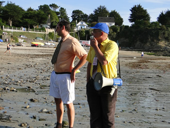 Les parrains des Rias 2010 Jérôme Poulain et M. Hervé sur la plage de Kerfany, pour une "contre-visite" touristico-maritime.