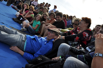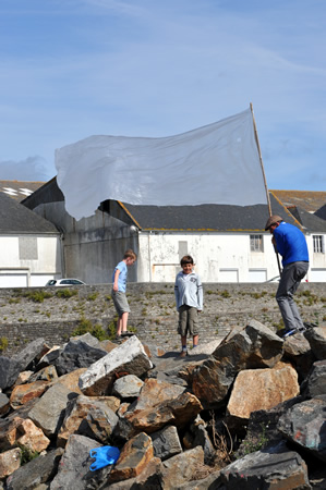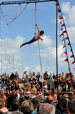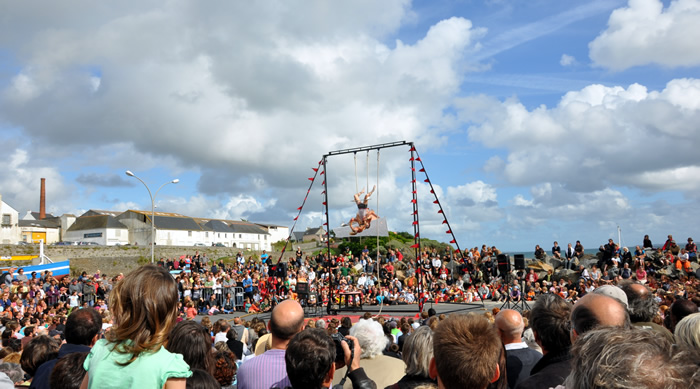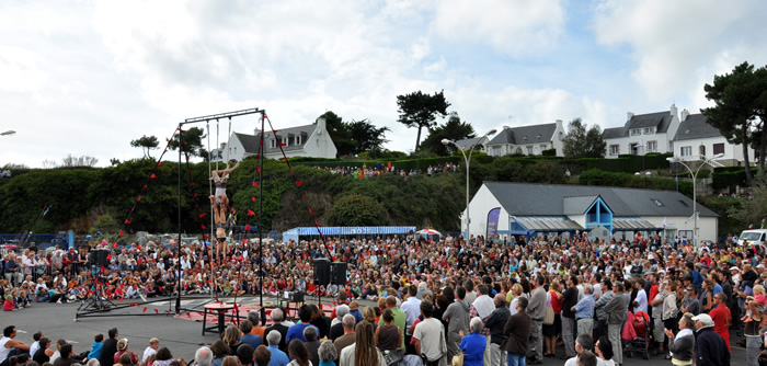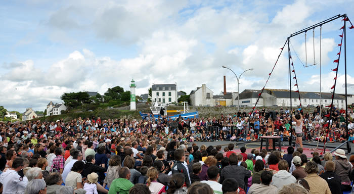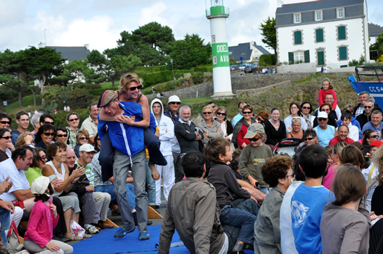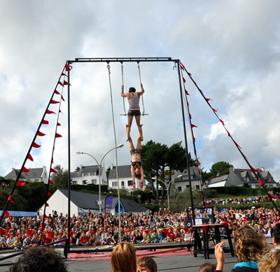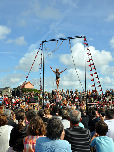 16h16 : les Irlandais de Tumble Circus, accueillis dans le cadre du réseau européen ZEPA, installent leur trapèze sur le port de Doëlan devant quelques 1500 personnes. |