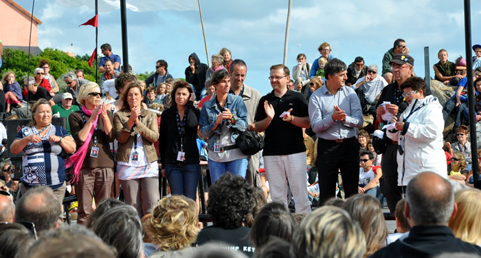 17h17 : le Président de la Communauté de communes du Pays de Quimperlé, aux cotés des Co-directeurs du Centre national le Fourneau et en présence des Maires et des Adjointes à la culture des 3 communes fondatrices annonce que "les RIAS 2012 se dérouleront sur 5 jours, du mercredi 29 août au dimanche 2 septembre et irrigueront de nouvelles communes du Pays de Quimperlé".