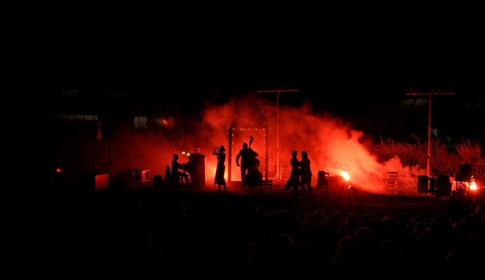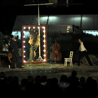 On arrive et on découvre une mystérieuse scène de crime : une jeune femme est morte. On remonte alors dans les dernières 24 heures de sa vie afin de comprendre ce qui s'est passé. On plonge alors dans son univers, un cabaret où se côtoient la patronne, un contrebassiste, une chanteuse... tout ce petit monde s'aime et se déchire, pourtant ce jour là quelque chose va basculer... Années 30, mauvais garçon, femme fatale, marché noir, jazz au phono, braquage de banque... tous les ingrédients du polar sont réunis dans ce spectacle qui mêle tango argentin, musique et arts du feu.
