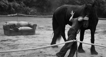 Ma bête noire pourrait être une danse « instinctive ». Sans user ni de selle, ni de mors, ni d'enrênements, le pari est de travailler avec un cheval nu, libre de ses mouvements et de sa fougue, le révélant comme un partenaire danseur, et non comme une monture dressée et contrôlée. Sur des musiques d'Alain Bashung l'envie est de pouvoir jouer sur le contraste des énergies : entre violence et douceur, courses, ralentis, immobilités...