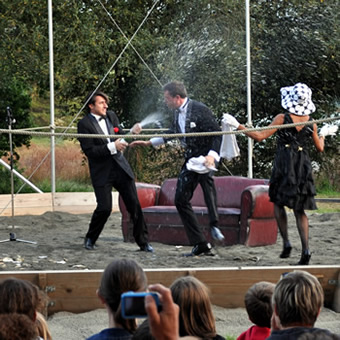 L'ouverture officielle de 3 ème Marée de Théâtre de Rue est orchestrée par Marie-France, Stanislas et Jean-Eudes de la Compagnie n°8 qui nous offrent une cérémonie quelque peu décalée... Et maintenant, place au théâtre !