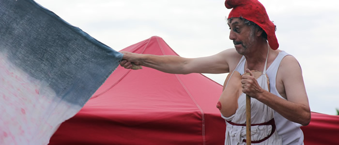 Au milieu de mes pensées, je réalise que, dans d'autres sites de Moélan, Makadam Kanibal et l'Homme cornu de Rode Boom Et Kurt Demey de viennent aussi de finir leur représentation du matin. Le Festival suit son cours et il serait sans doute préférable que je suive le mien. Il me reste un spectacle à voir mais j'ai un peu de temps. Je profite de la plage, hydrate mes écailles malmenées par le soleil puis longer la côte vers Clohars-Carnoët, au Pouldu.