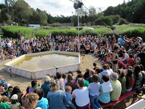 A l'année prochaine, fin août, pour de nouvelles expériences artistiques qui nous feront partager, ensemble, ces émotions que seul le spectacle vivant et les arts de la rue (de l'eau et des champs, ici) en particulier savent faire remonter à la surface de nos mers intérieures. Bon vent, bonne mer ! Moi, je profite de la marée haute au Pouldu et me glisse, pour quelques mois, dans mon autre élément...