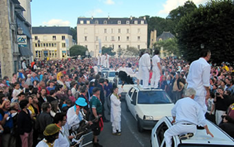 Quant à moi, charmé(e) par cette liesse marquant mes premiers pas dans la ville-centre, j'irai demain, mercredi 29, faire une escapade dans les terres. Après un rapide somme dans le lit de l'Isole, je remonterai demain cette rivière de quelques brasses. Elle me mènera à Scaër où j'ai rendez-vous, à 18h32, avec les Compagnies Wet Picnic, Beau Geste et Pete Sweet. On m'avait promis du plaisir dans ce voyage artistiquement fabuleux. Promesse tenue ! Nul besoin d'imaginer un Pays doté de tant d'atouts. Contrairement à moi, ce Pays n'est pas une chimère : il existe. Je décide donc d'y rester encore quelques jours ! »