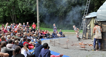 Je commence la journée par des retrouvailles avec Moélan-sur-mer. La ville a peu changé et j'espère que ses habitants, si accueillants l'an dernier, ne ressemblent pas désormais aux personnages de Makadam Kanibal qui font le spectacle ce matin.