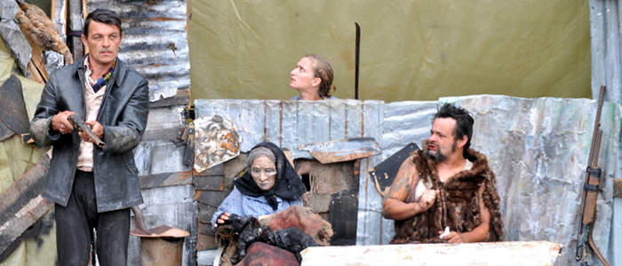 Le décor, glauque à souhait, est la piste d'un cirque où évoluent 3 monstres farceurs, habiles et lestes, dont l'humour est aussi noir que le café que j'ai oublié de prendre ce matin. Les 2 frères et la soeur se déchirent, s'enflamment pour un rien et la famille explose, sans respect pour la vieille mère.