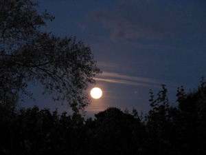 Nous sommes vendredi et il paraît que c'est le jour du poisson. Le ciel étant dégagé, il sera frais et beau mais la journée sera donc longue ! Une étrange luminosité me taquine les yeux et me sort du lit de l'Isole où j'ai passé la nuit. A 7h03, je suis face à un instant magique où 2 parfaits cercles lumineux se font face dans le ciel. La seconde pleine lune du mois d'août a rendez-vous avec le soleil naissant. Clin d'œil. Sans traîner, je vais me dégourdir la tête et les mains !