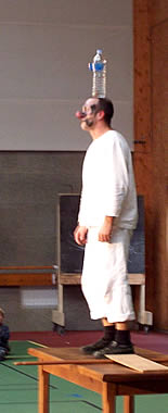 A&O - KaO? "O", un clown muet et musicien cherchant un ami et qui n'hésite pas à décapiter et flageller des bouteilles en plastique pour exprimer sa frustration à ne pas en trouver. Munis de quelques cartons, tables et objets hétéroclites qu'il détourne de leur utilisation quotidienne, O exécute des numéros qui convoquent plusieurs disciplines pour donner naissance à une fable douce-amère sur la solitude. |