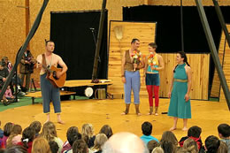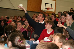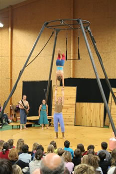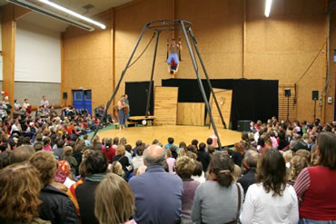 | A l’heure d’hiver Réfugiés dans la salle omnisports de Plobannalec-Lesconil pour cause de temps « incertain »…, les deux spectacles de ce deuxième dimanche d’automne des arts de la rue à Plobannalec-Lesconil ont attiré énormément de monde; plus de 600 personnes sont venues passer l’après-midi ensemble et en compagnie des artistes. |
