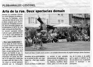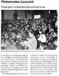 Reportages Compagnie Bougrelas (28 sept) Banc Public / Réverbère (30 nov)