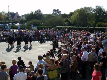 Pour le 1er rendez-vous de l'édition 2009 des Dimanches d'Automne des Arts de la Rue, 700 spectateurs se sont donnés rendez-vous derrière la parade des 55 danseurs et 10 musiciens de la compagnie quimpéroise.