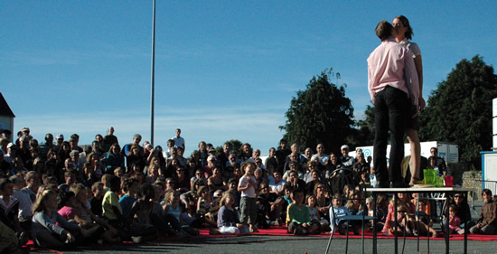ce sont plus de 400 spectateurs qui se sont retrouvés pour l'ouverture de l'édition 2010 des Dimanches d'Automne des Arts de la Rue à Plobannalec-Lesconil.