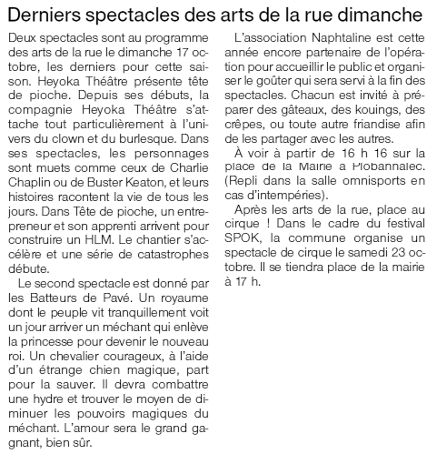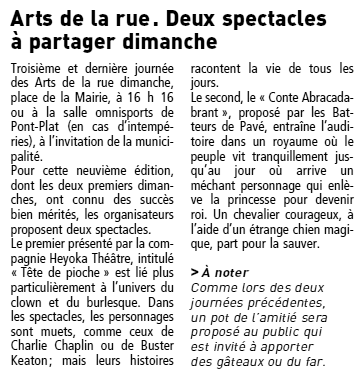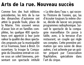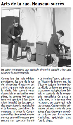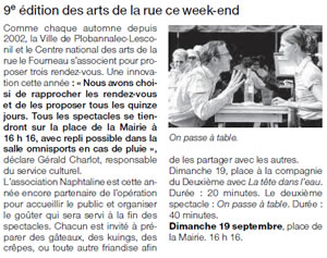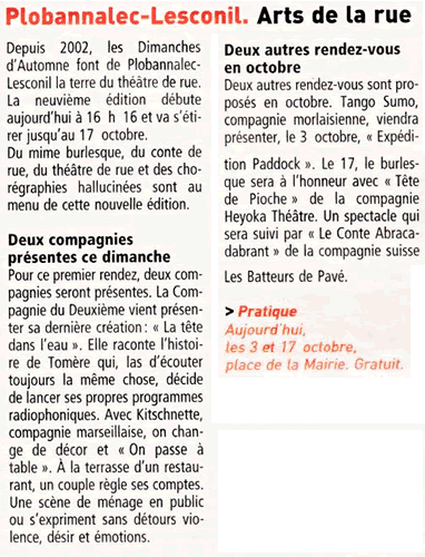 Accueil - Document de présentation (pdf 465ko) - La presse La Compagnie du Deuxième / Kitschnette - Groupe Tango Sumo - Heyoka Théâtre / Batteurs de pavés