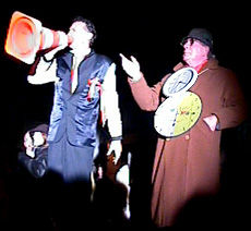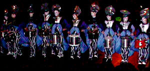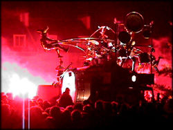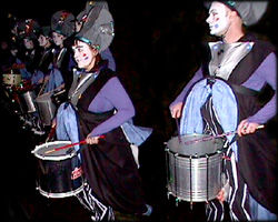 Les deux cliques de batteurs finissent par se rejoindre autour d'un camion balancier pour une déambulation peuplées d'apparitions de violonistes... |