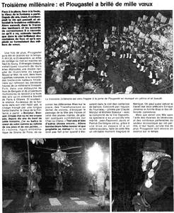A ce moment-là, 2000 et 1 ballons comme autant de voeux s'envolèrent vers les cieux et une pluie d'étoiles salua le passage au Troisième Millénaire... Depuis ce jour, depuis cette nuit, quand je vois une étoile filante, je pense à ce 23 décembre 2000 à Plougastel... et je fais un voeu ! |