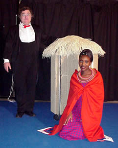 Vous aurez le privilège de voir à la fois, coté coulisse et coté plateau ! Soyez prêts, soyez complices de ce premier tour de passe-passe, car vous verrez ce qui ce passe devant et derrière le rideau. Quand rien ne va plus dans la coulisse, dans la lumière tout doit paraître beau Tic Tac et Tuma vous présentent des numéros de Grandes Illusions. |